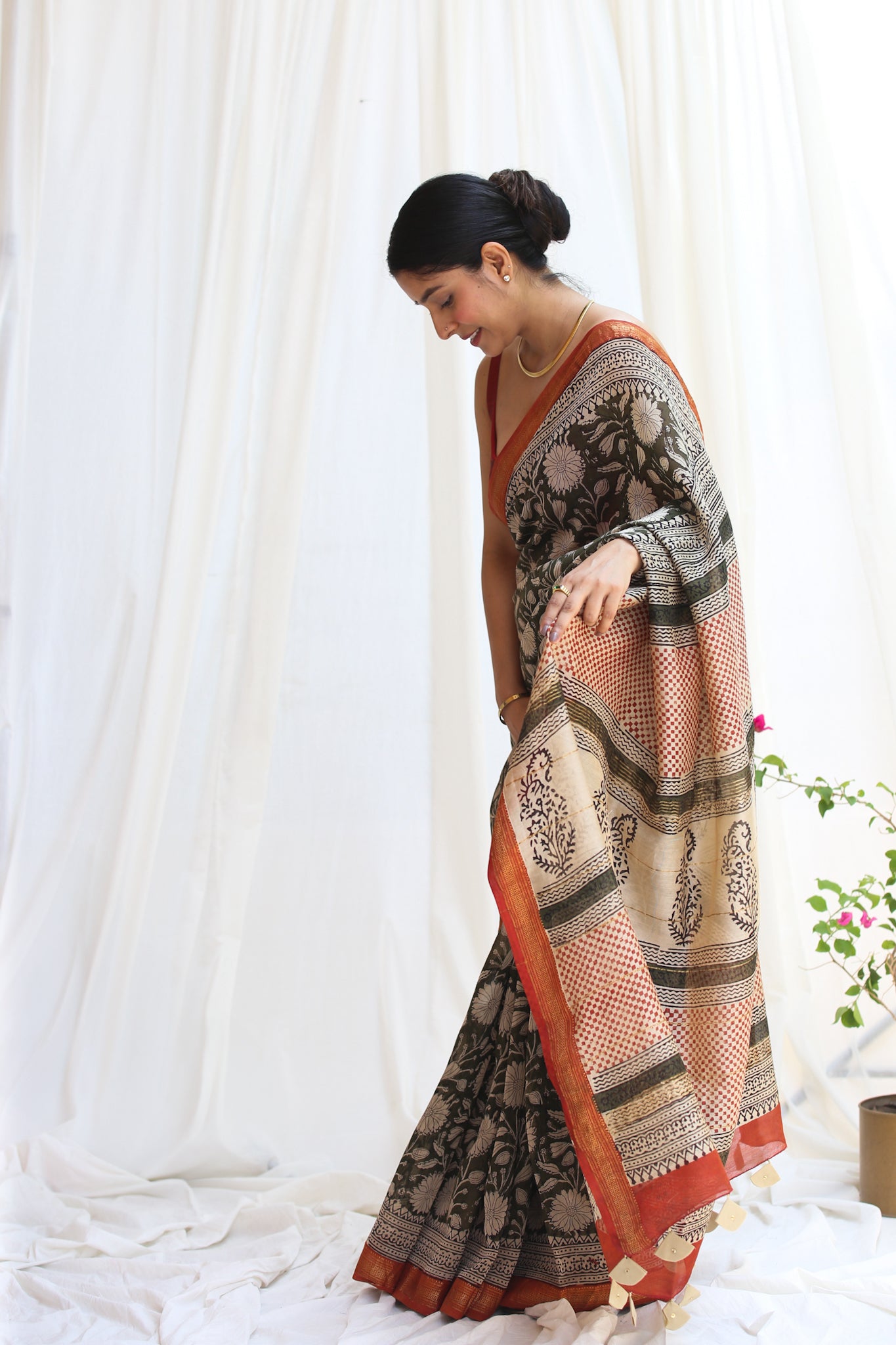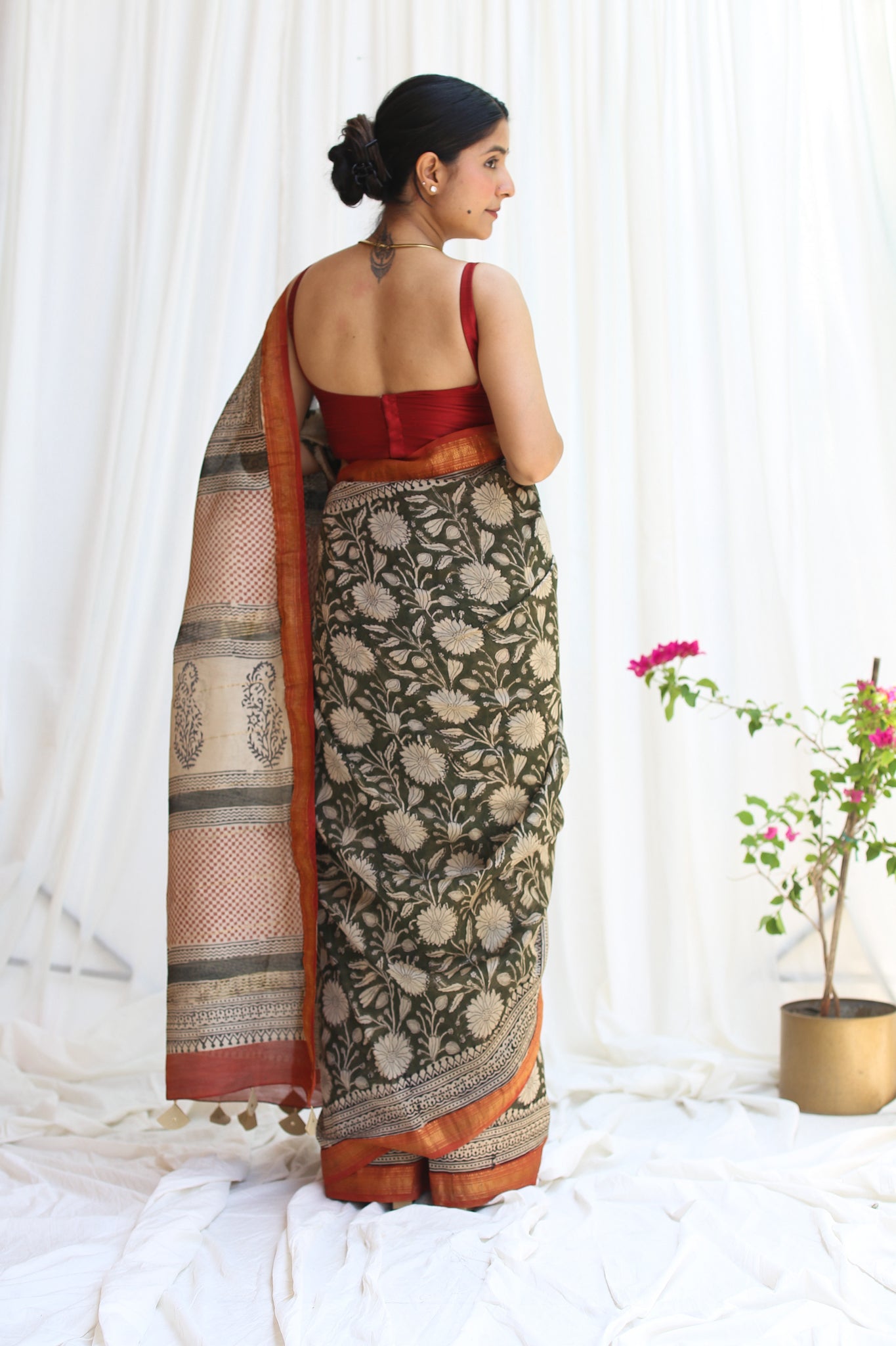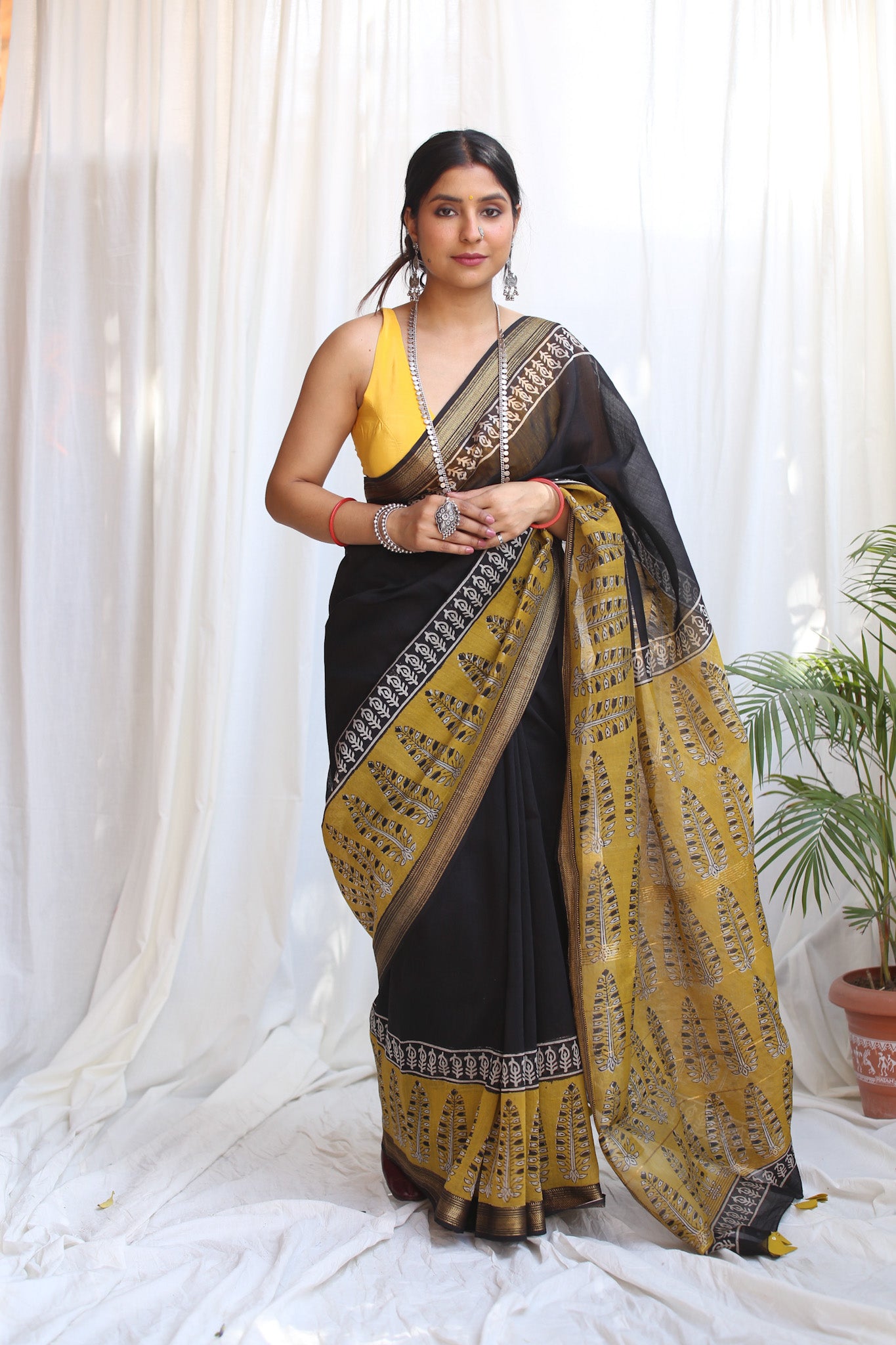 - Traditional Motifs: Inspired by the natural beauty and architecture of Maheshwar, the motifs on these sarees are often intricate and symbolic.