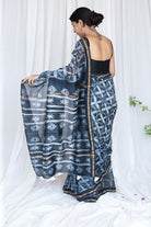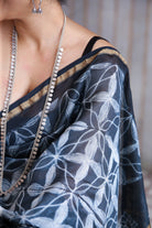 Charcoal Needle Shibori Chanderi Silk Cotton Saree