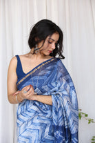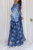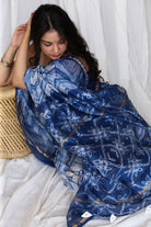Indigo Needle Shibori Chanderi Silk Cotton Saree