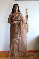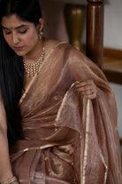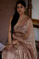 Bronze Kota Doria Pure Tissue Silk Handloom Saree