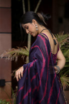 Dark-Purple Magenta Tie-Dye Chanderi Saree