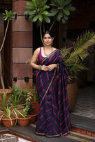 Make a bold statement with the Dark Purple Magenta Tie-Dye Chanderi Silk Cotton Saree. The vibrant colors and traditional tie-dye patterns elevate the luxurious Chanderi silk cotton fabric, making it perfect for festive events.