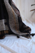 Kaushiki : Black Maheshwari Saree with Beige Border (Bagru Handblock)