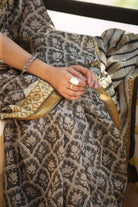 Chitrali : Grey-Black Geometric Bagru Maheshwari Saree