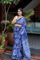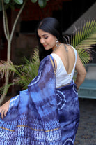 Indulge in exquisite elegance with the Dark Navy Tie-Dye Chanderi Saree. Traditional tie-dye techniques are fused with contemporary design, resulting in a vibrant and sophisticated creation. Its luxurious fabric and vibrant hues make it a versatile option, suitable for both casual and semi-formal occasions.