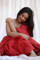 Lalima : Red Geometric Discharge Handblock Chanderi Saree