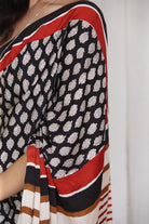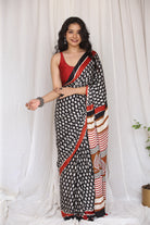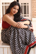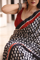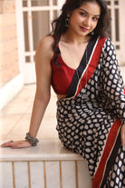 Ink on Flame: Black Boonti Bagru Ajrakh Modal Silk Saree