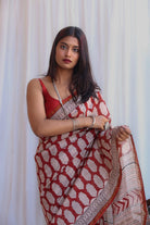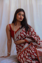 Aaghaaz : Madder Red Bagru Handblock Chanderi Saree