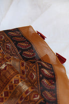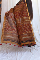 Other Details : Silk by Cotton, 5.5m length, 45'' width, 80-90 cm Blouse length, Block print process is Bagru handblock Art, Handmade Tassels on pallu.