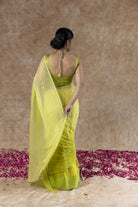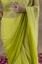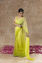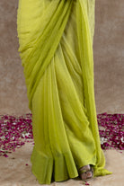 Explore the elegant charm of Ombre Light Green chiffon saree, adorned with delicate Mukaish handwork. This versatile saree is suitable for both day and evening occasions, making it the perfect choice for any type of celebration.