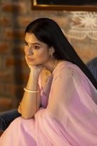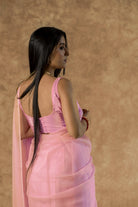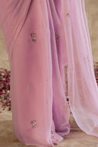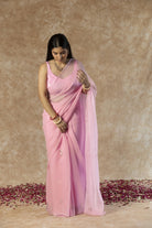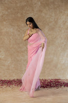 Experience the luxurious allure of Light pink chiffon saree featuring intricate Mukaish handwork with Booti allover the saree. Perfect for day or night, this saree is versatile and perfect for any celebration.