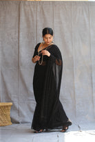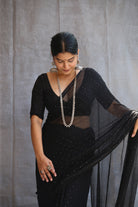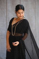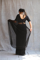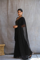 Experience the luxurious appeal of a Black chiffon saree embellished with detailed Mukaish handwork. Perfect for day or night, this saree is perfect for any celebration.