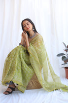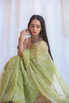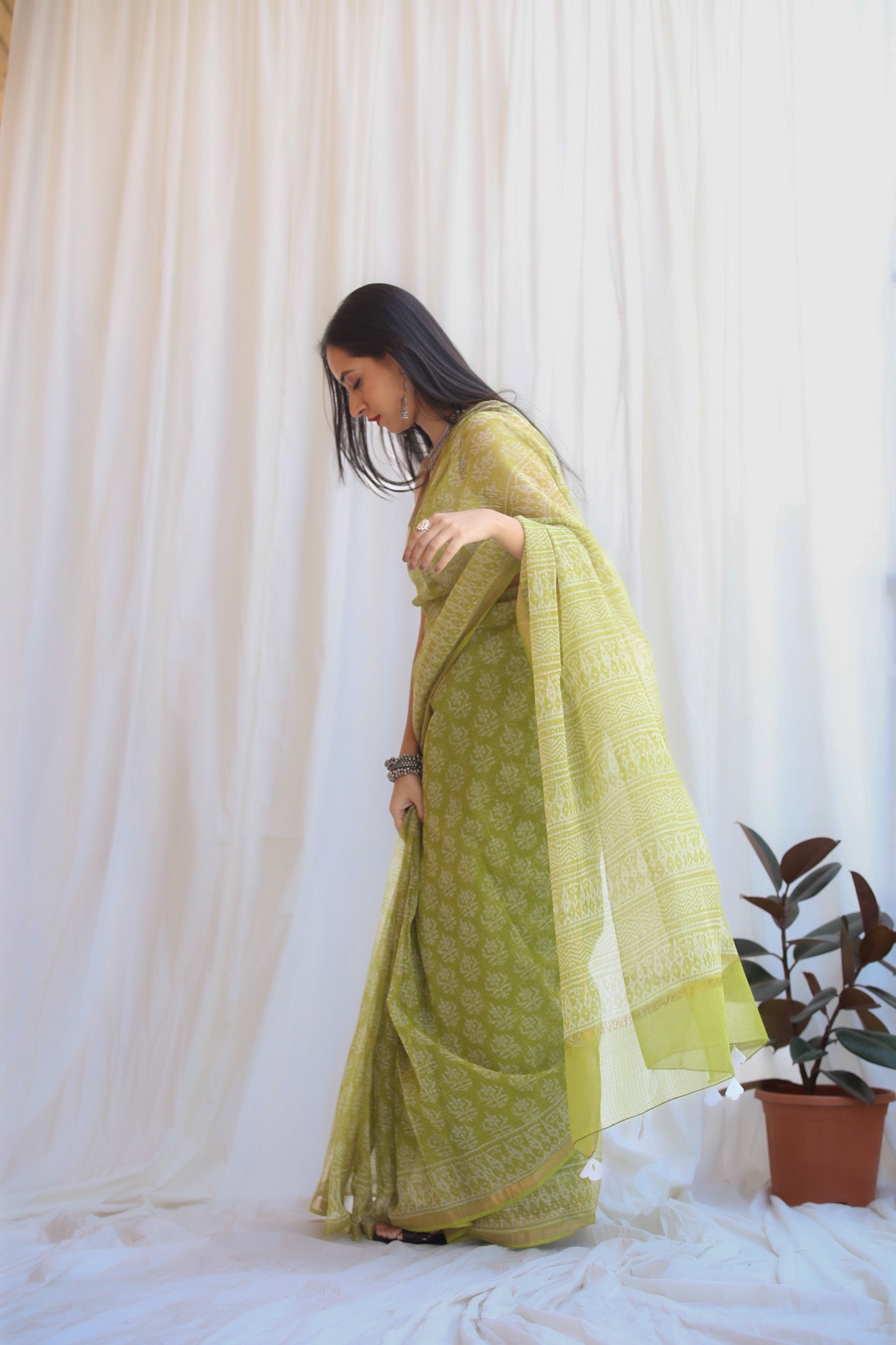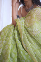 Baag : Angoori Green Kota Doria Saree with Dabu Handblock
