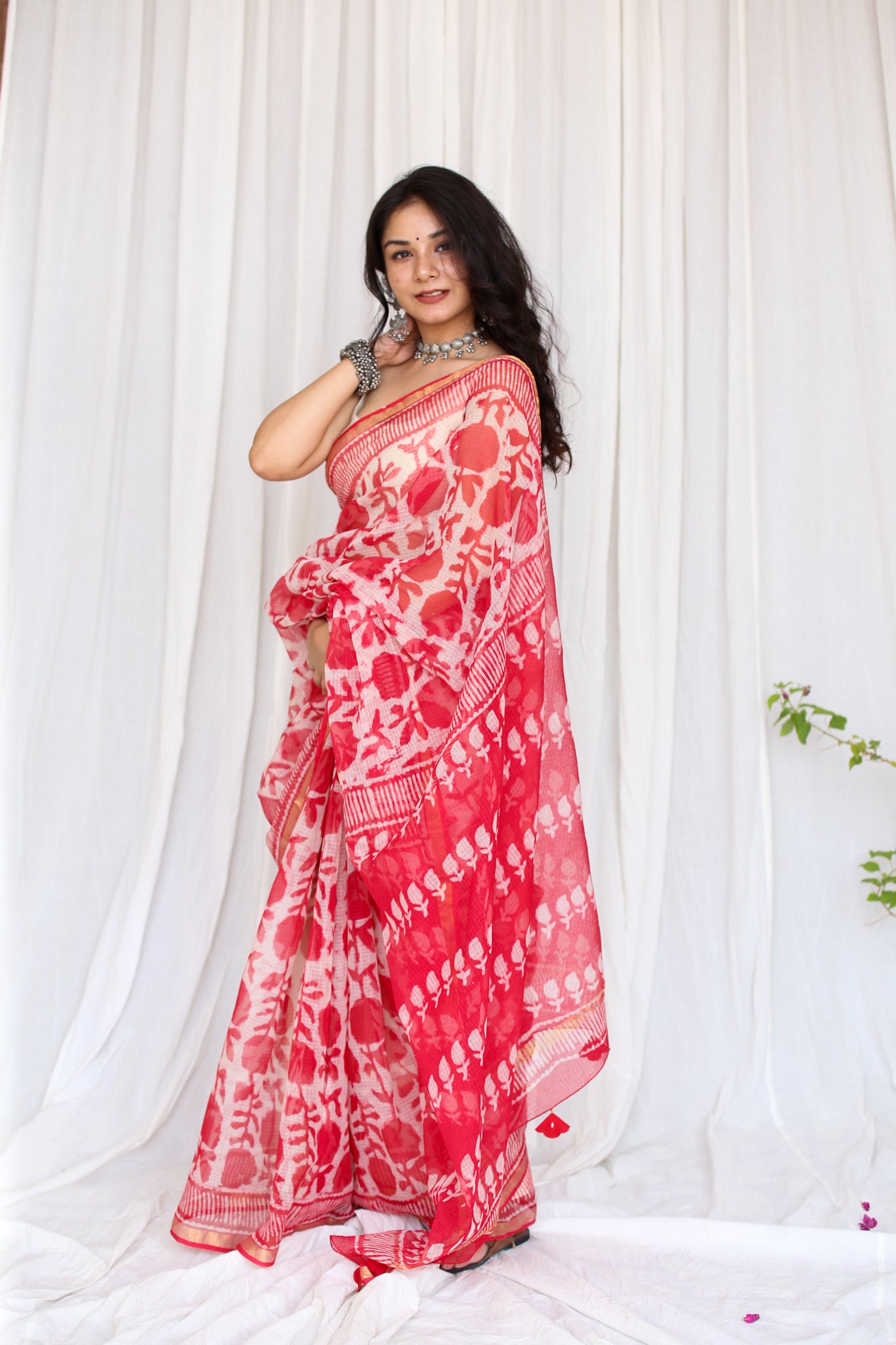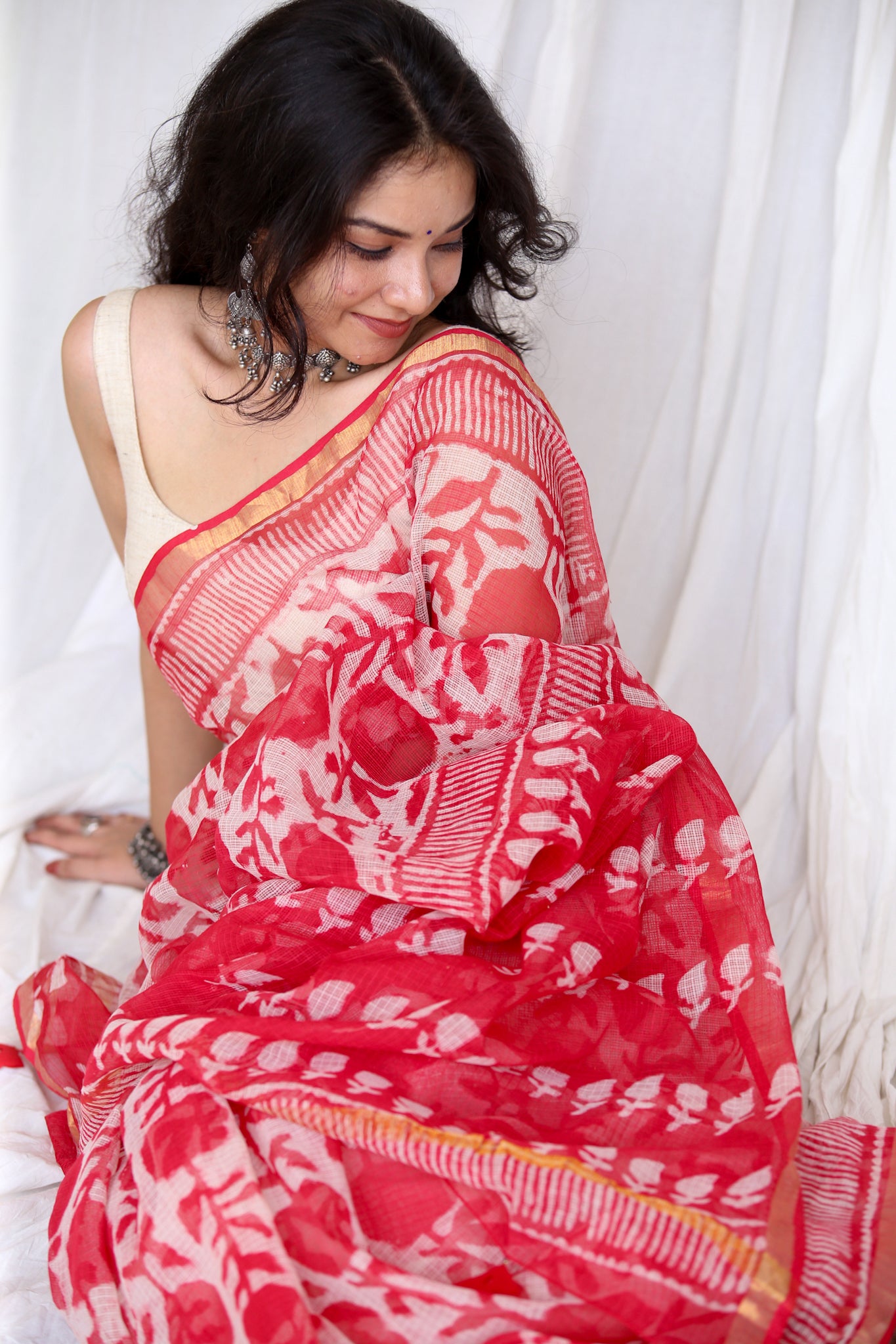 Arunima : Reddish Dabu Handblock Kota Doria Saree