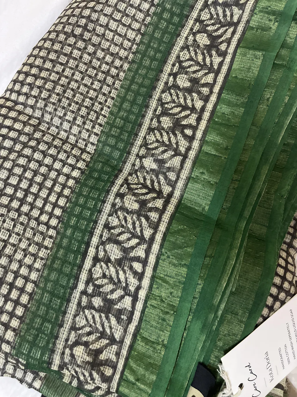 The Black Checked Bagru Handblock Print Kota Doria Saree combines traditional Bagru handblock printing with a modern check pattern. The soft, airy fabric and muted tones make it a versatile addition to your wardrobe.